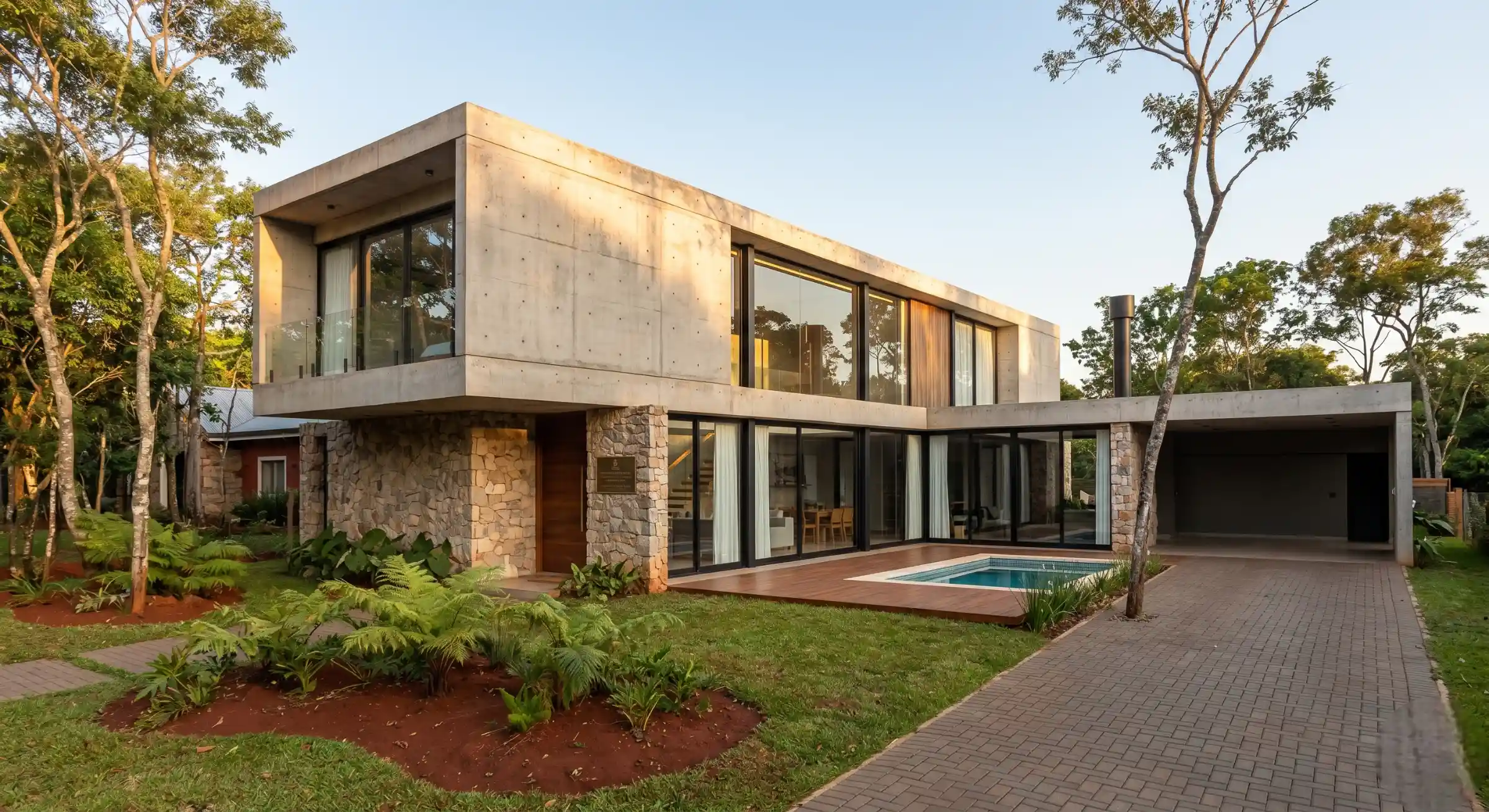 Vivienda unifamiliar de categoría con diseño contemporáneo. Se realizó la obra completa desde cimientos, estructura de hormigón armado, mampostería, instalaciones y terminaciones de alta gama. Entrega en plazo acordado.